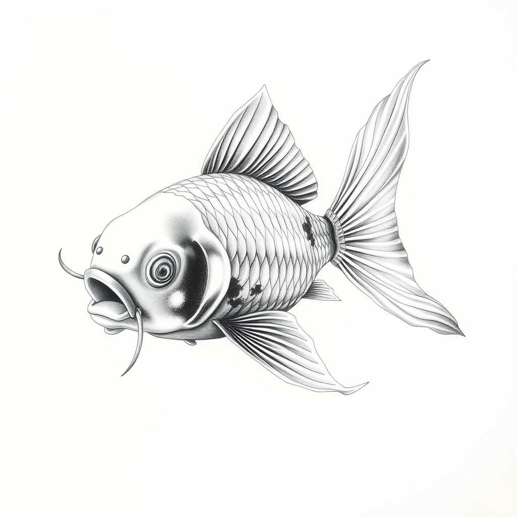 A neon koi fish β highly detailed graphite drawing, fine shading, soft texture, realistic pencil sketch style