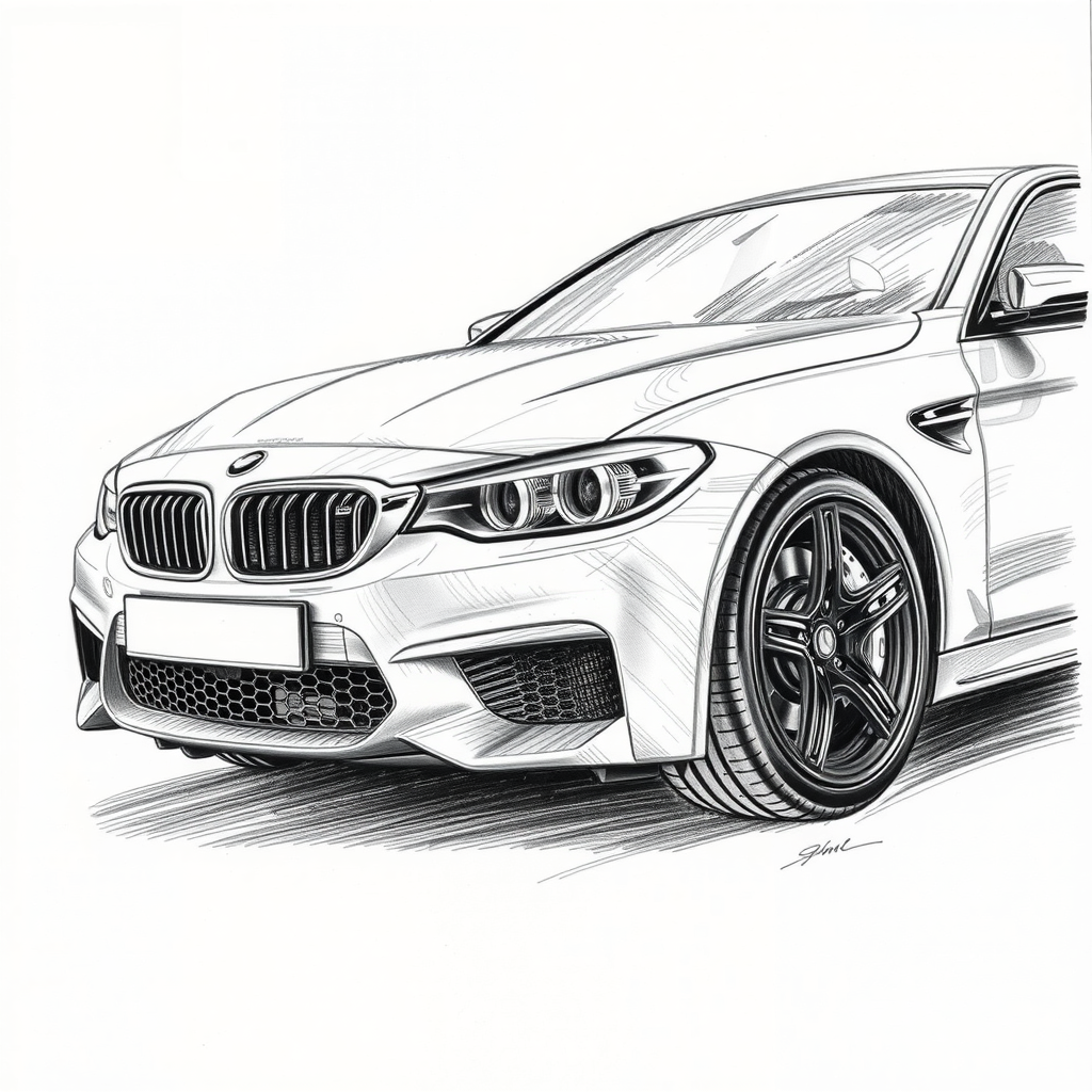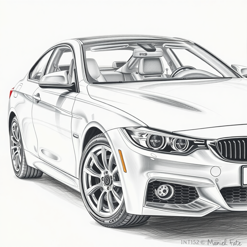 car β highly detailed graphite drawing, fine shading, soft texture, realistic pencil sketch style