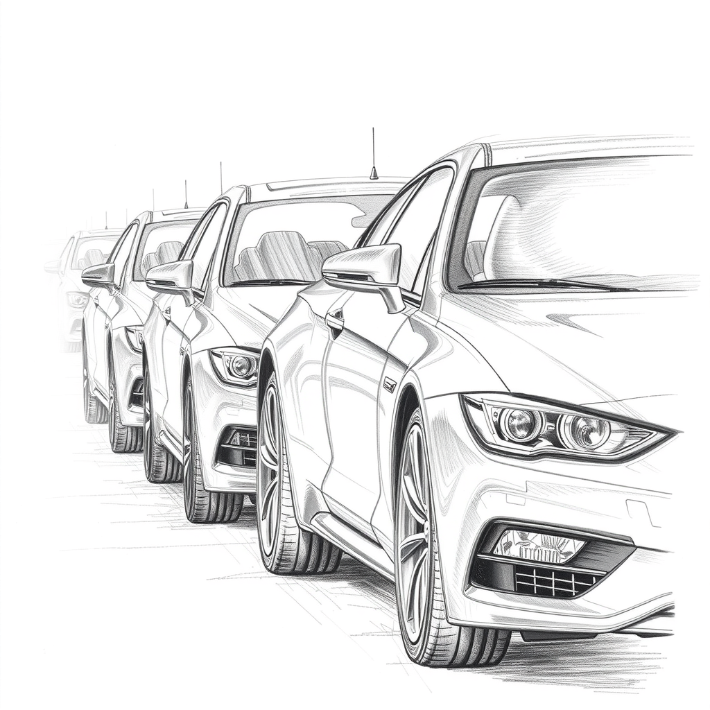 cars β highly detailed graphite drawing, fine shading, soft texture, realistic pencil sketch style