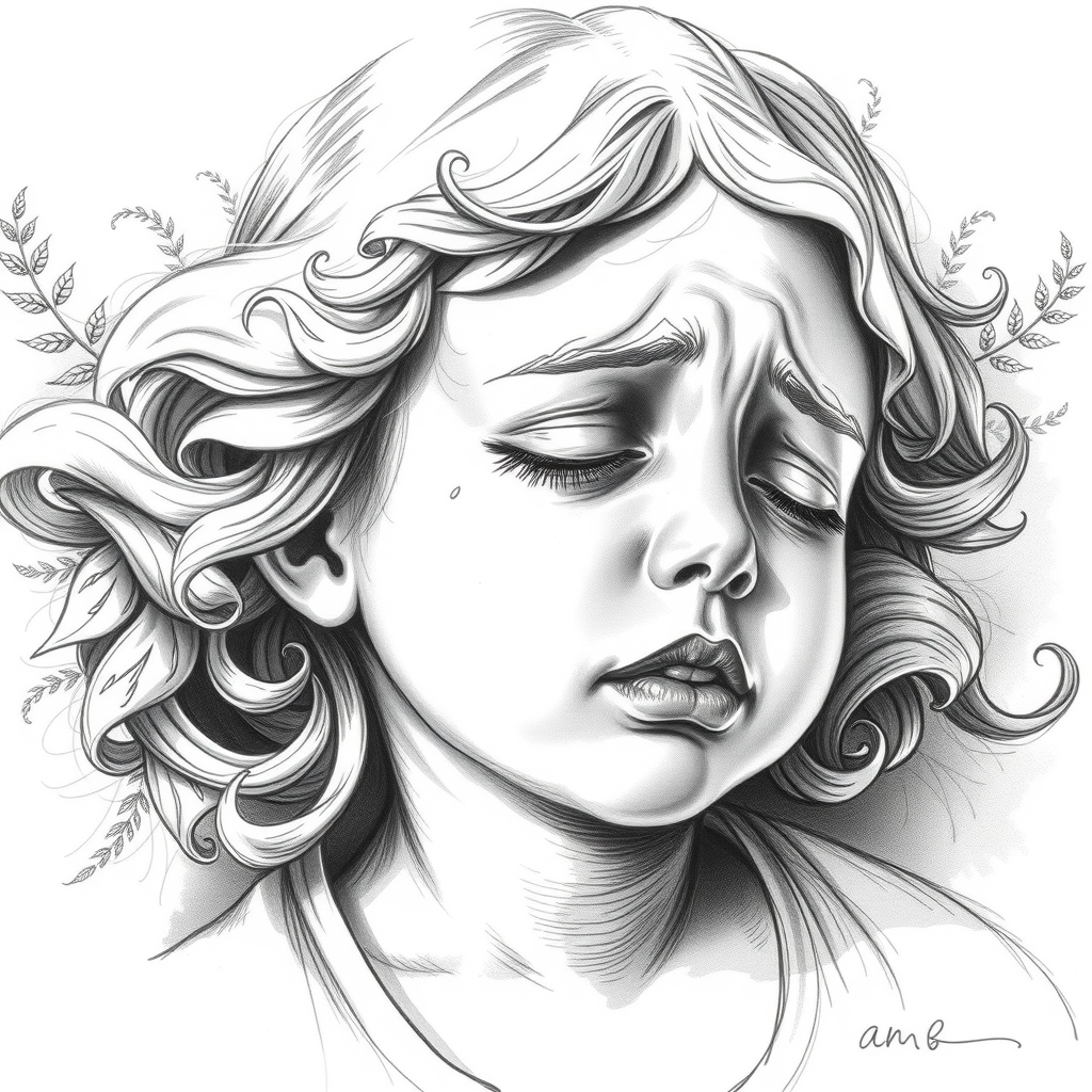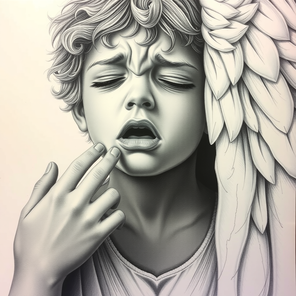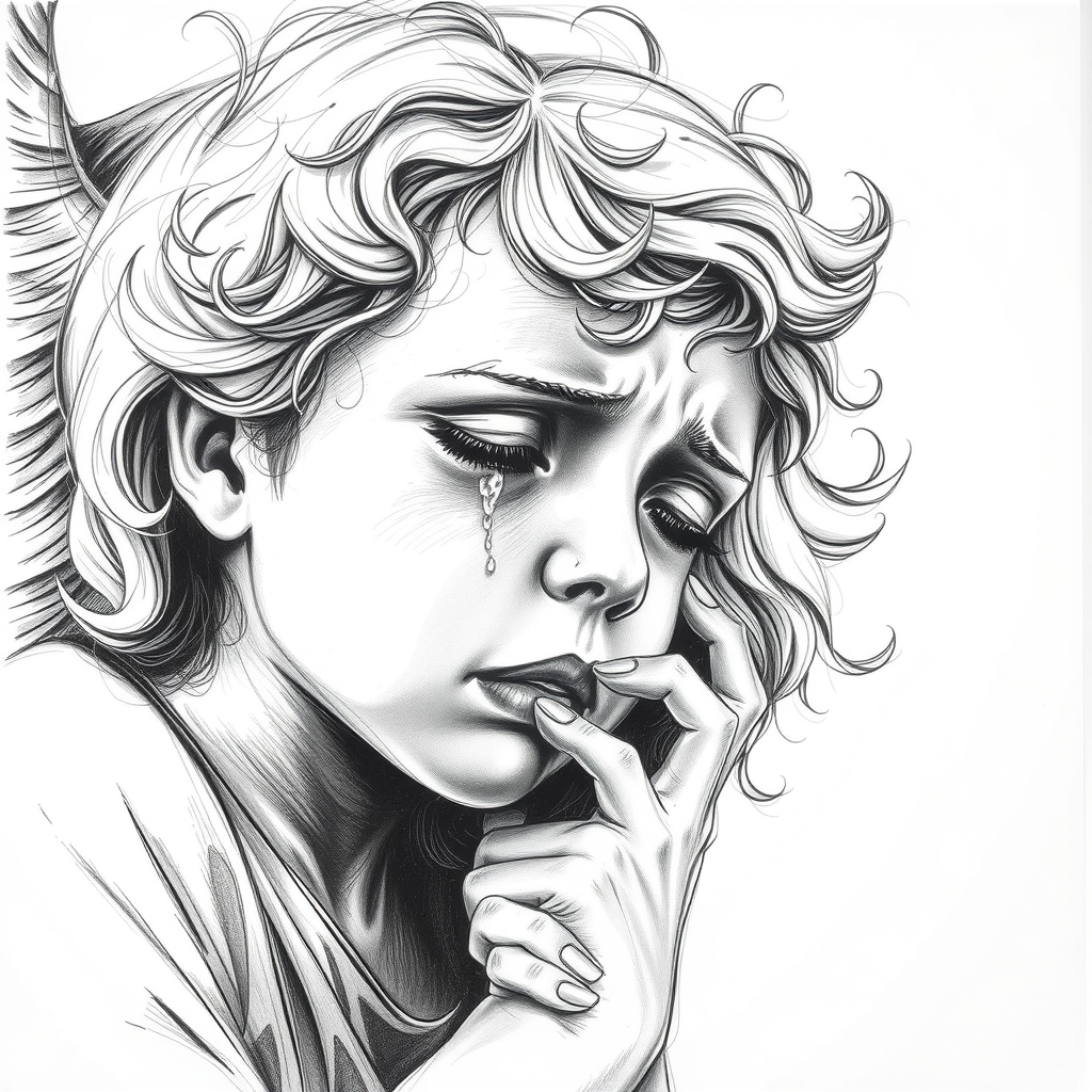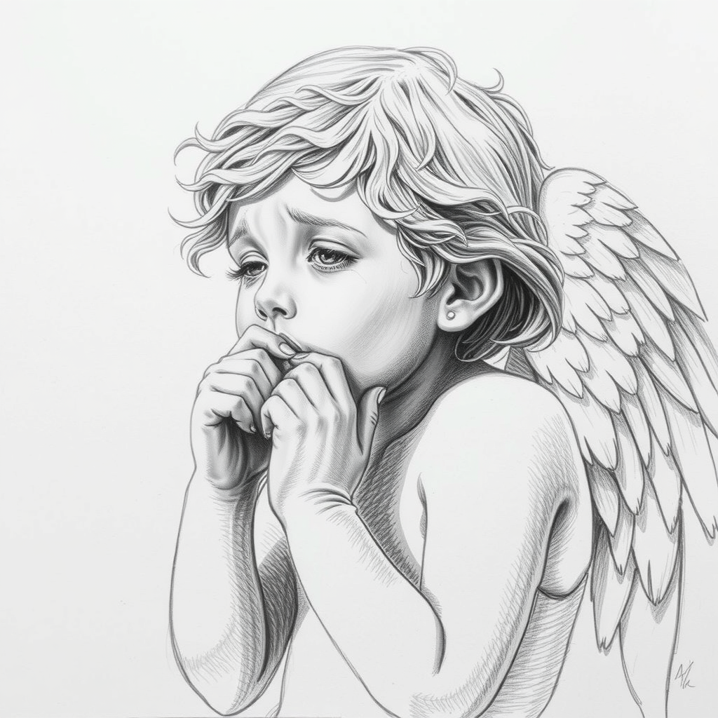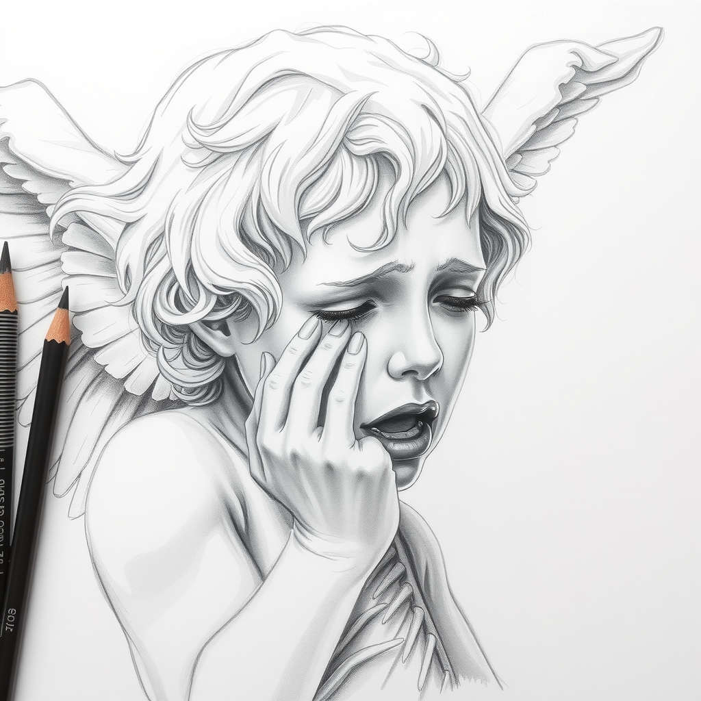 angel fcrying β highly detailed graphite drawing, fine shading, soft texture, realistic pencil sketch style