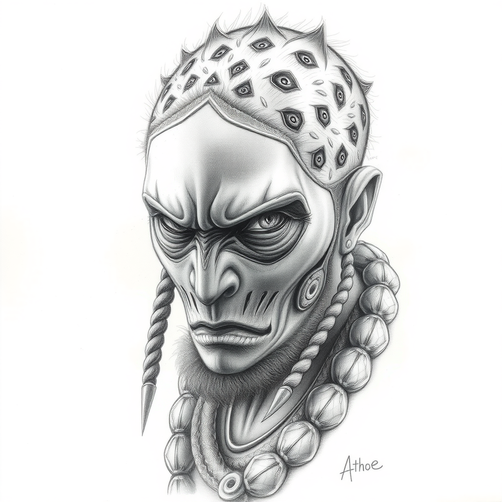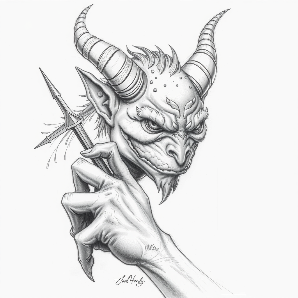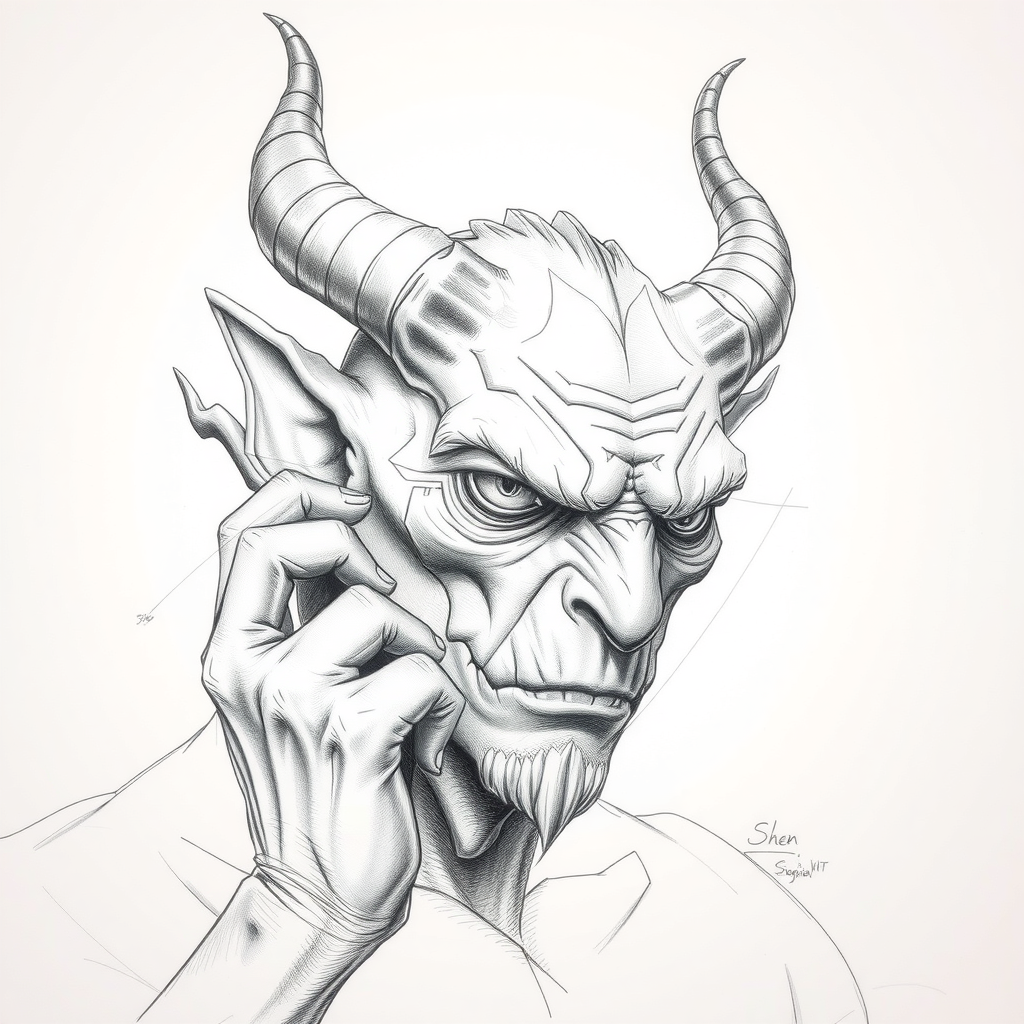 Angle holding. Shen wit devil β highly detailed graphite drawing, fine shading, soft texture, realistic pencil sketch style