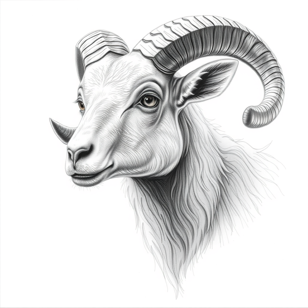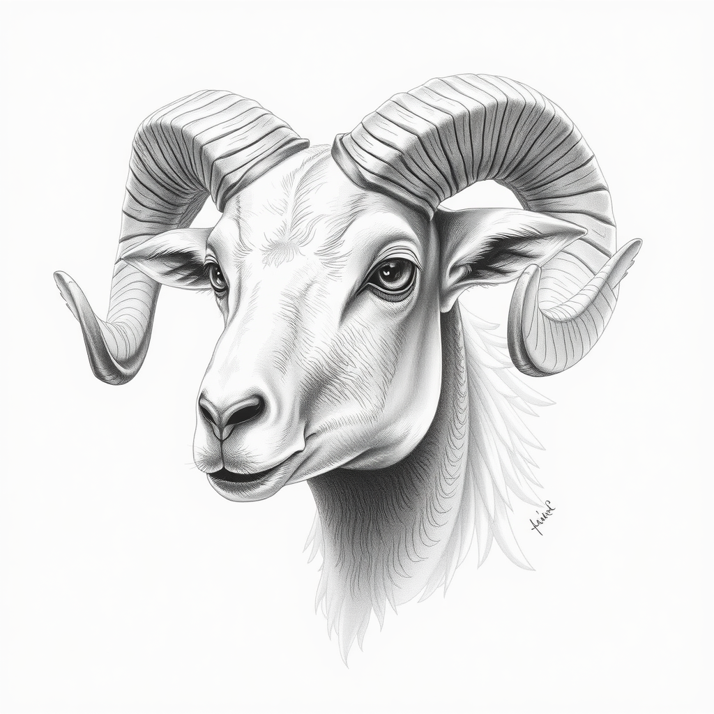 angel ram β highly detailed graphite drawing, fine shading, soft texture, realistic pencil sketch style