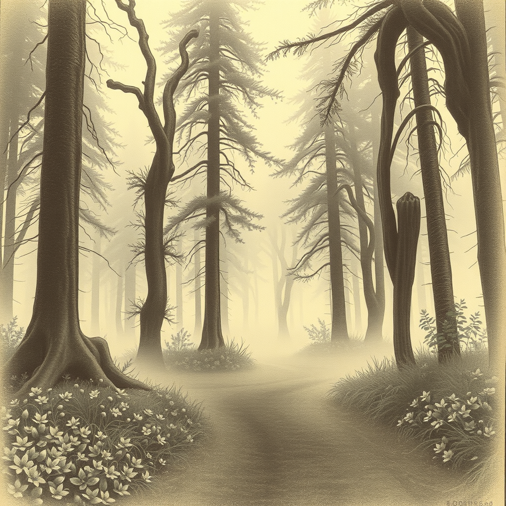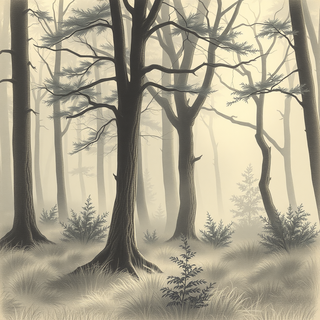 a serene forest glade with morning mist, soft analog film grain, warm muted palette, soft bokeh, natural skin tones. cinematic composition. High resolution, cinematic, subtle film grain. β highly detailed graphite drawing, fine shading, soft texture, realistic pencil sketch style