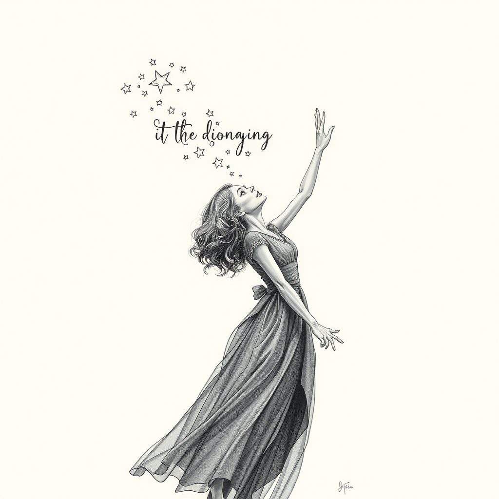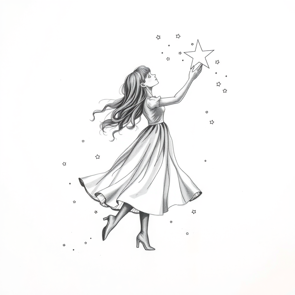 A girl dancing in the star dreaming of love β highly detailed graphite drawing, fine shading, soft texture, realistic pencil sketch style